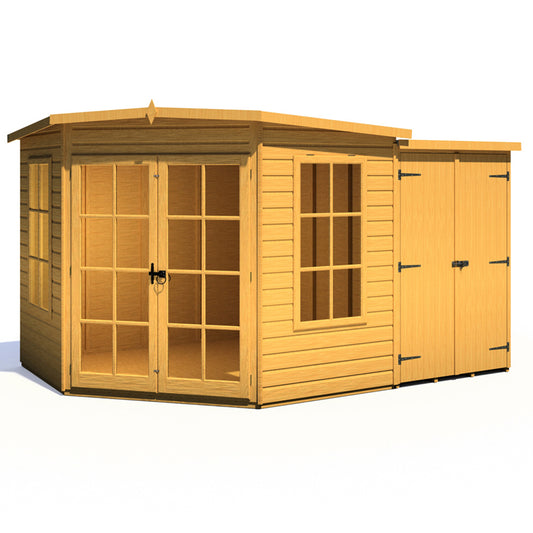 Shire Hampton 8 x 12ft Double Door Corner Summerhouse with Side Shed
